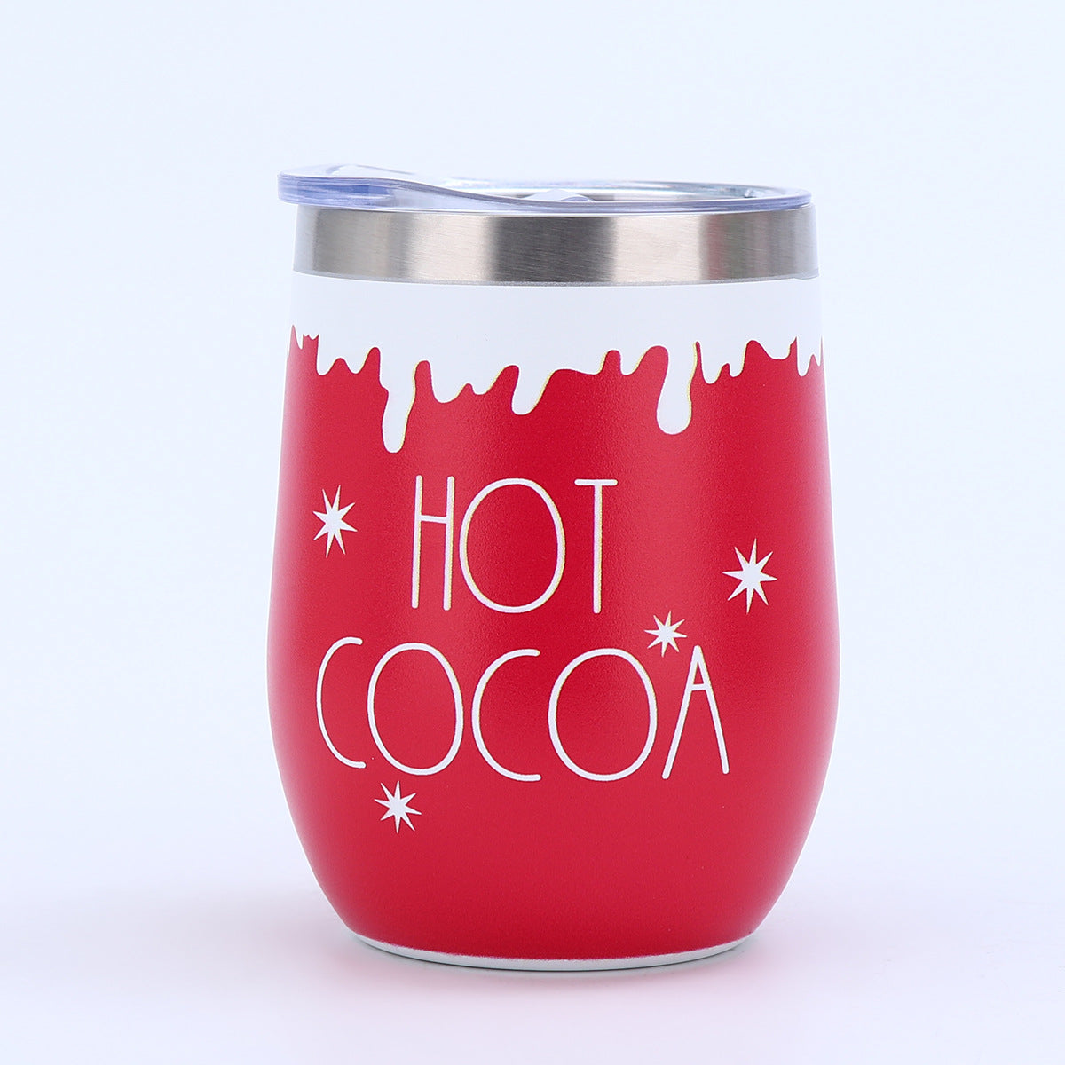 These festive stainless steel wine tumblers are perfect Christmas gifts! They will keep your beverage of choice hot or cold while keeping you in the spirit of the season! Tumblers hold 12 oz and come with leak-proof lids. Choose from Ho, Ho, Ho, Santa, Elf, Hot Cocoa, and Joy. They are SUPER CUTE!