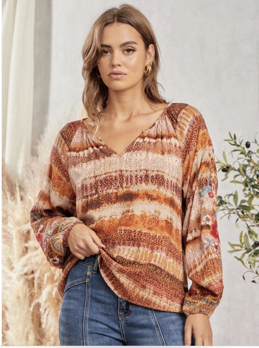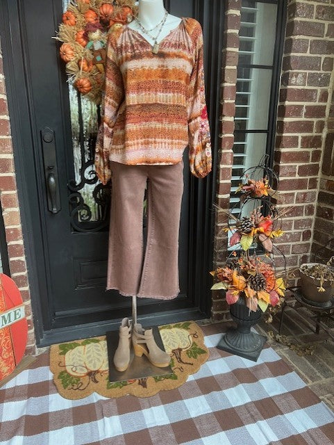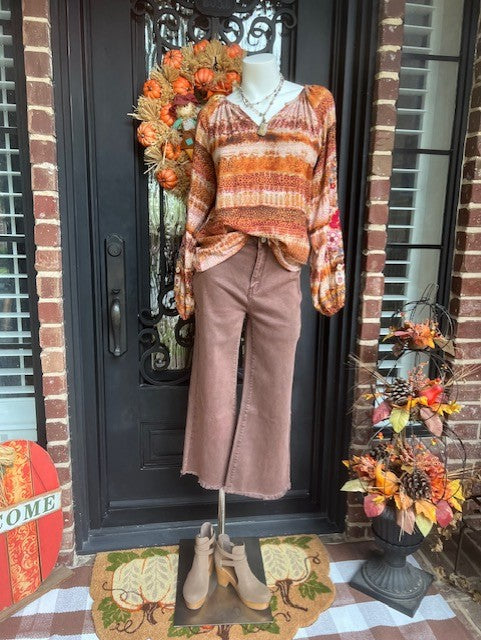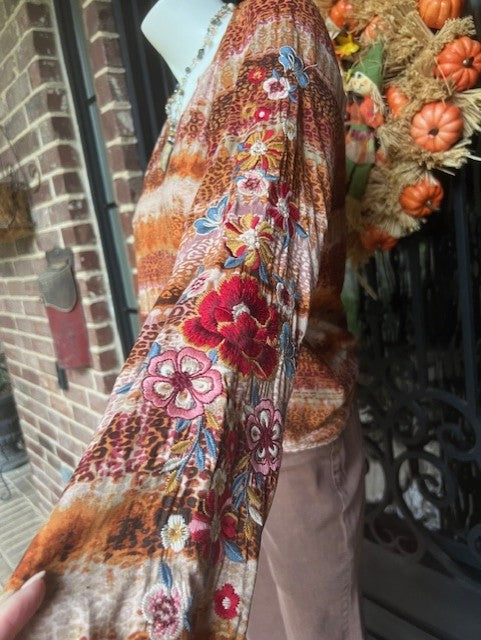 Falling is one of our new fall tops and Savanna Jane never misses! From the mix of browns and to the beautifully embroidered florals down the sleeves that Savanna Jane is known for, we think you'll be "falling" for this beauty!