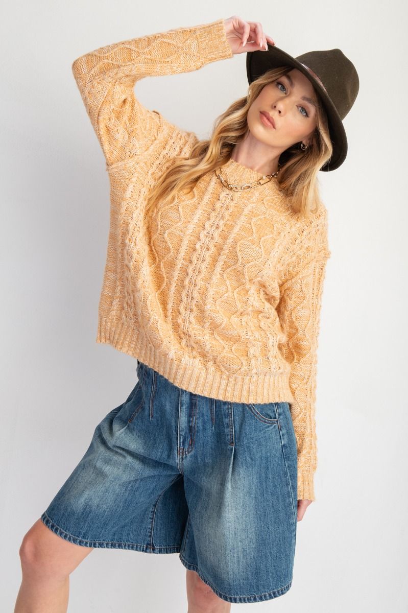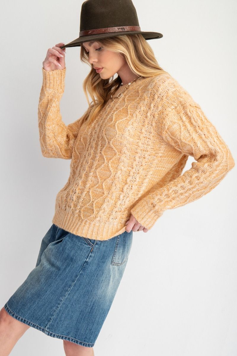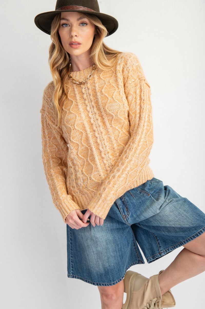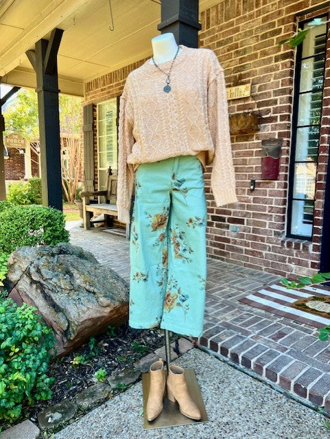 This yummy sweater is a winter staple for your closet girls! A beautiful blend of yellows, ambers and creams to add the perfect touch to your outfit. Great with jeans, slacks, shorts or skirts! We bought her to wear with our new Easel's Everything Flower Print pants! She's a gorgeous compliment to these!